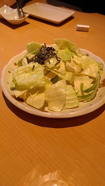 看起來好像只是生的高麗菜沒啥味道,但其實是淋上了鹽味的醬在菜上,
